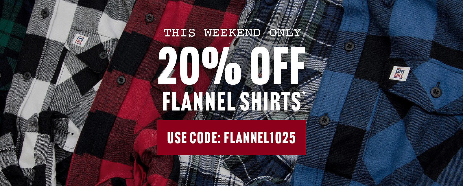*20% OFF FLANNEL SHIRTS: This offer expires on 10/7/25 at 11:59 PM EST. Offer valid on in-stock items only in our Flannel Shirt Collection with code FLANNEL1025. All other items are excluded. Online only. Not valid on prior purchases, bulk, or custom orders. Cannot be combined with other offers or sale prices. We reserve the right to modify pricing, shipping or promotion details at any time, including canceling the offer. Offer has no cash or credit value, is not redeemable for cash, is non-transferable, will not be replaced if lost or stolen, and cannot be auctioned or sold. Void where prohibited.