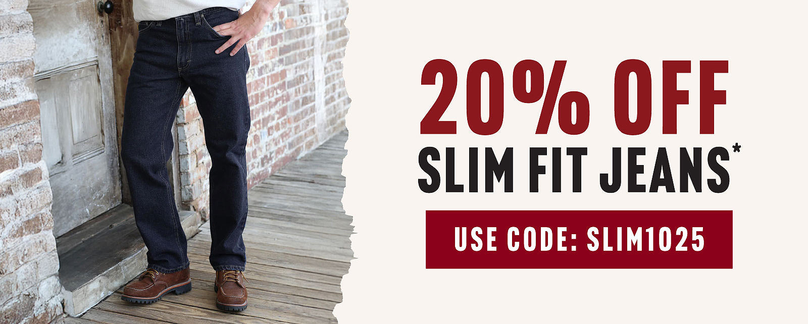 *20% OFF SLIM FIT JEANS: This offer expires on 10/19/25 at 11:59 PM EST. Offer valid on Slim Fit Jeans - Industrial Blue only with code SLIM1025. All other items are excluded. Online only. Not valid on prior purchases, bulk, or custom orders. Cannot be combined with other offers or sale prices. We reserve the right to modify pricing, shipping or promotion details at any time, including canceling the offer. Offer has no cash or credit value, is not redeemable for cash, is non-transferable, will not be replaced if lost or stolen, and cannot be auctioned or sold. Void where prohibited.
