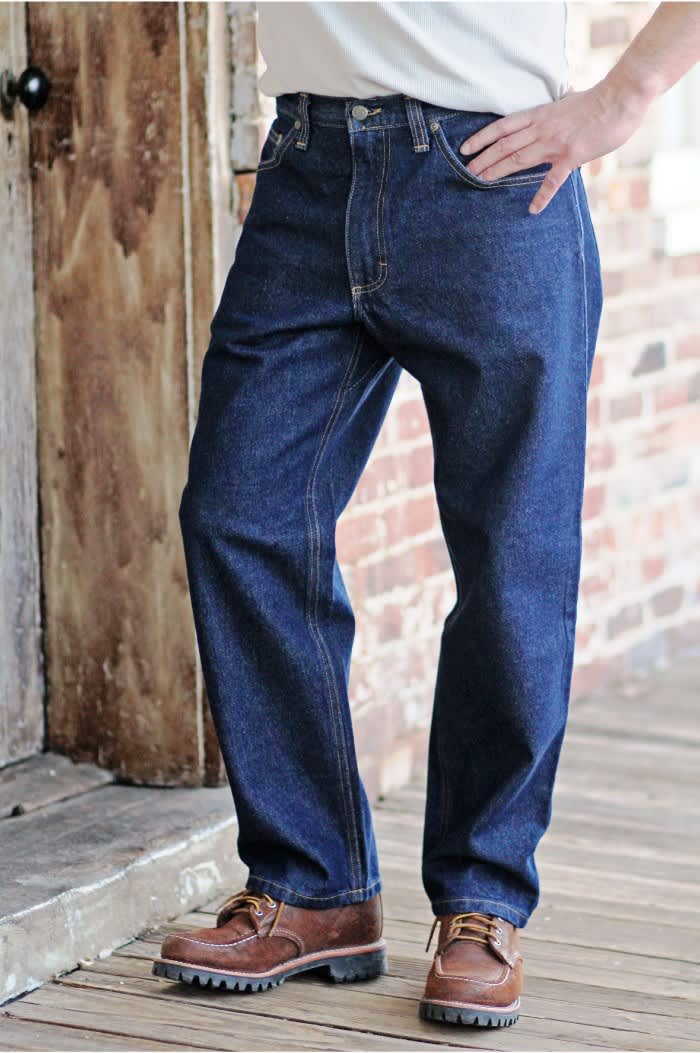 A classic button fly five pocket jean that features a slightly higher rise that sits up on the waist, and a traditional straight leg with a comfortable fit through the hip, thigh and knee with our signature gusset design sewn into the stride for exceptional added comfort. Proudly Made in the USA since 1987. Please note this is a combined offering that includes slight denim and wash variations picked and shipped at random upon purchase. We have also consolidated our inseam measurements to Short: 29"/30", Regular: 31"/32", Long: 33"/34", and Extra Long" 36"+ for better sizing availability.