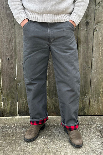 We are excited to introduce our new Flannel Lined Canvas Pant to the Gusset Collection! Made from American Made 12 oz. duck canvas, the fit is easy and relaxed and sure to become a work horse and a closet favorite that is perfect for the cooler weather. Designed with front slant pockets with matching deep, secondary coin pockets and lined in a cozy 4.5oz flannel inlay. As always, our trademark gusset is sewn into the stride for extraordinary comfort and movement. Gravel Gray color. Proudly Made in the USA since 1987.