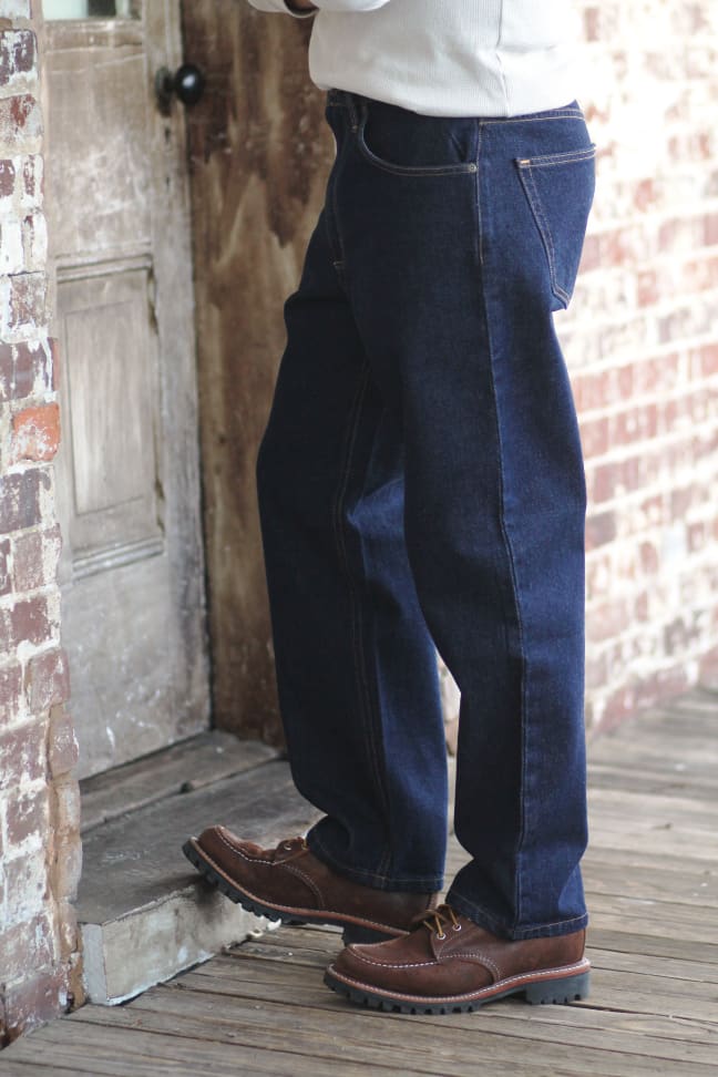 One of our best and popular models, our Relaxed Fit jean is a classic five pocket jean with our signature gusset design sewn into the stride and features a slightly higher rise that sits up on the waist, and made to have more room in the hip, thigh and knee for the person who likes a looser, relaxed style. Our Industrial Blue wash is a 16 dip dye process that produces noticeably richer, darker denim creating a colorfast indigo that is 20% longer lasting.